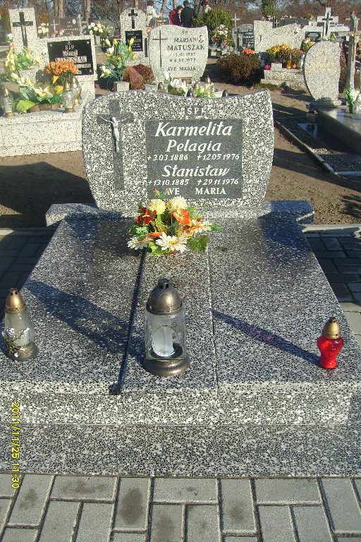 Grób: V,II,17i18 Karmelita Pelagia ur.:1886-03-03 zm.:1976-05-12 Karmelita Stanisław ur.:1885-10-13 zm.:1976-11-29 |