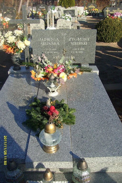 Grób: V,III,32i33 Sibińska Jadwiga ur.:1923-09-23 zm.:1991-12-15 Sibiński Zygmunt ur.:1919-10-13 zm.:1994-03-04 |
