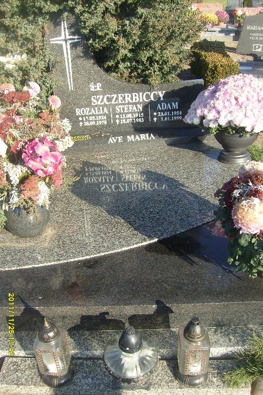 Grób: V,III,6i7 Szczerbicka Rozalia ur.:1924-05-17 zm.:1978-09-28 Szczerbicki Stefan ur.:1915-08-13 zm.:1983-07-18 Szczerbicki Adam ur.:1954-01-23 zm.:1999-01-01 Szczerbicka Ewa Józefa ur.:1956-03-08 zm.:2019-03-05 |