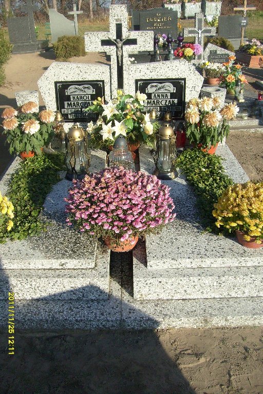 Grób: V,V,15i16 Marczak Anna ur.:1896-06-27 zm.:1984-06-29 Marczak Karol ur.:1903-03-27 zm.:1985-03-07 Marczak Jan ur.:1958-06-22 zm.:2020-12-17 Marczak Stefan ur.:1931-01-06 zm.:2018-09-20 |