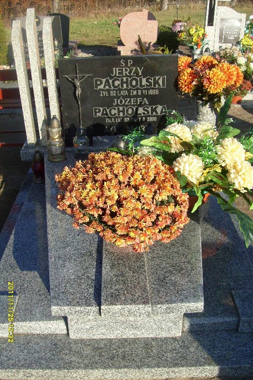 Grób: V,VI,27 Pacholska Józefa ur.:1918-01-01 zm.:2000-10-01 Pacholski Jerzy ur.:1914-01-01 zm.:1996-06-08 |