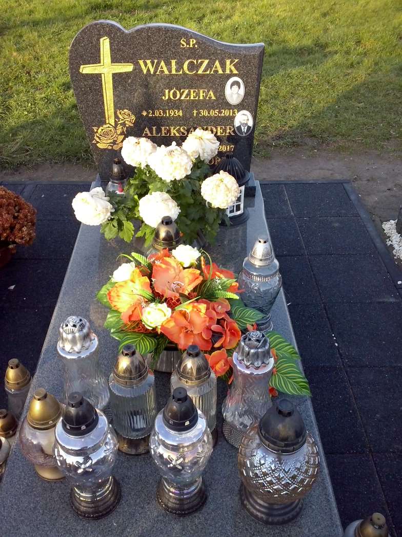 Grób: II,II,13 Walczak Józefa ur.:1934-03-02 zm.:2013-05-30 Walczak Aleksander ur.:1930-03-27 zm.:2017-04-04 Walczak Apolonia ur.:1896-11-08 zm.:1958-06-14 |