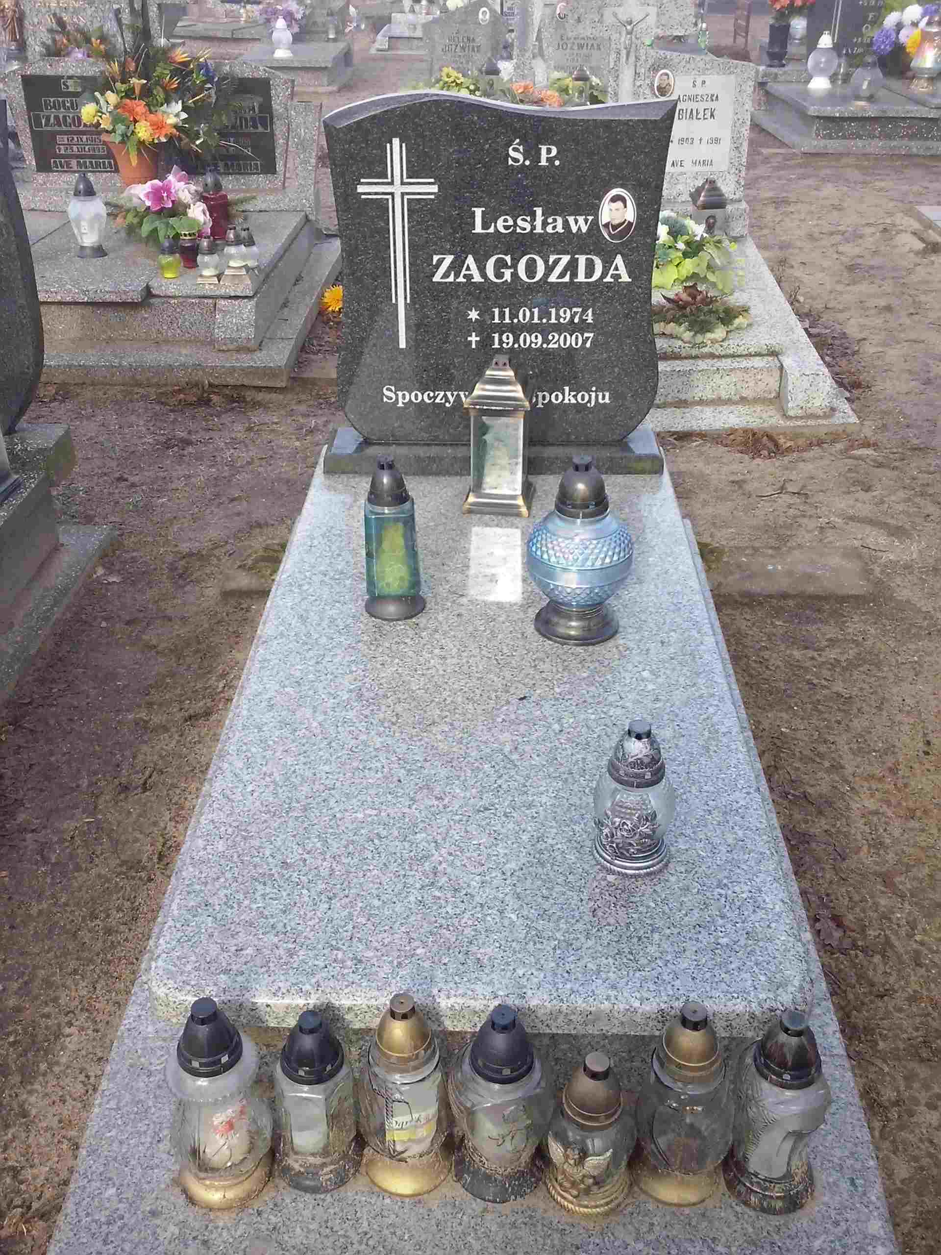 Grób: I,I,10 Zagozda Lesław ur.:1974-01-11 zm.:2007-01-19 Zagozda Zbyszek ur.:1974-01-11 zm.:2024-02-29 |