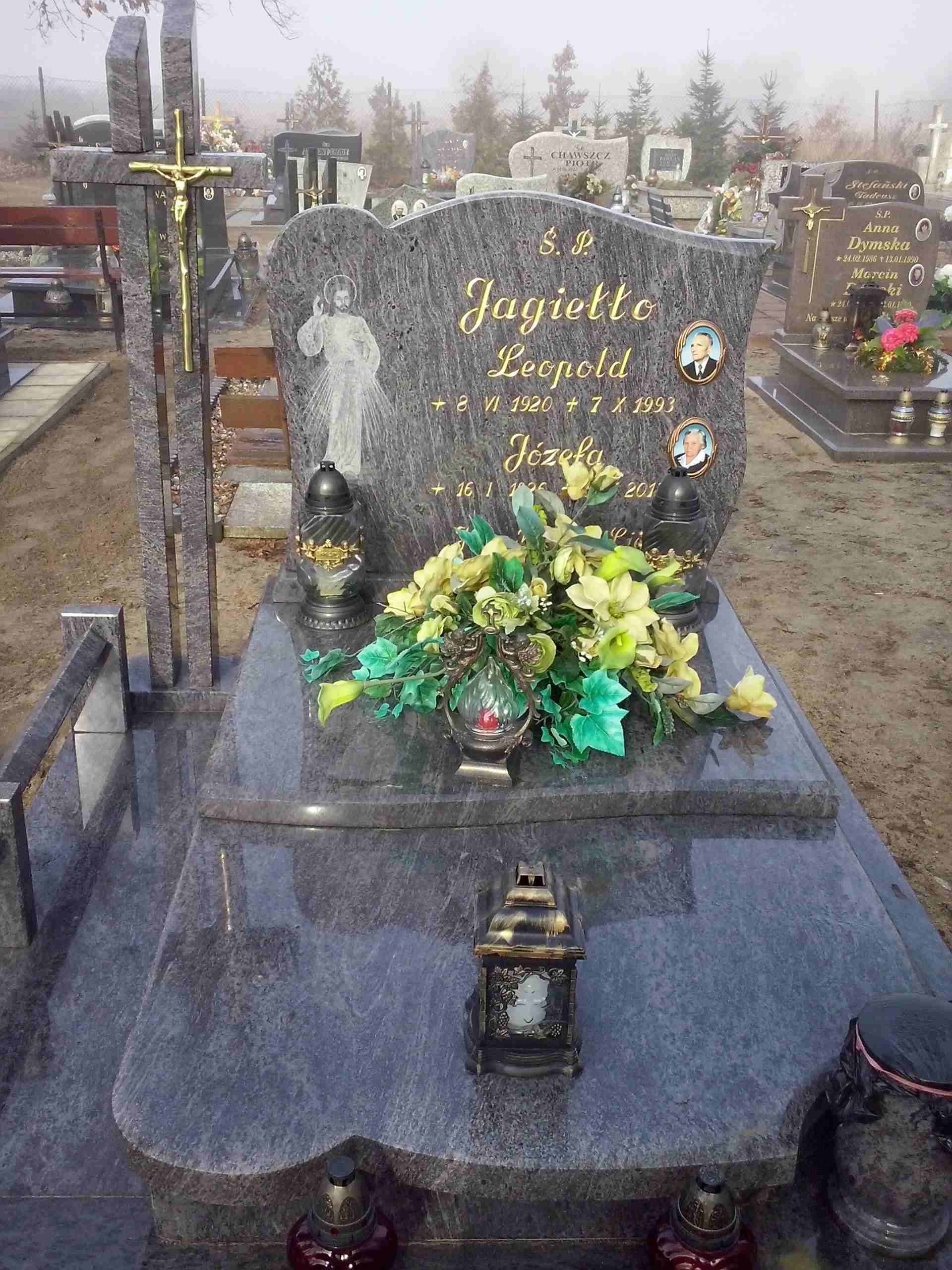 Grób: I,II,4i5 Jagiełło Leopold ur.:1920-08-06 zm.:1993-07-10 Jagiełło Józefa ur.:1926-01-16 zm.:2013-04-15 |