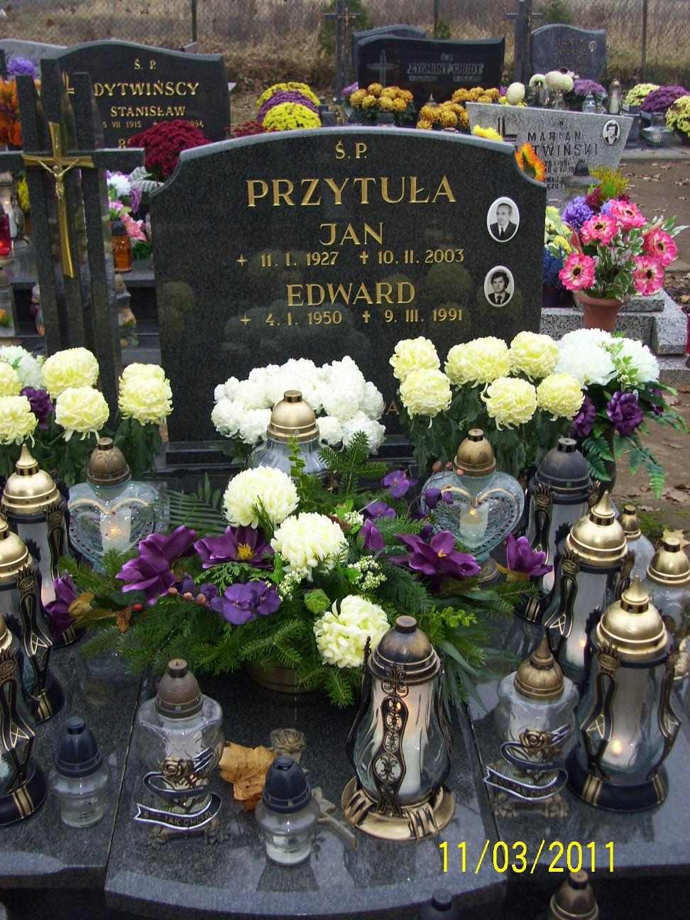 Grób: I,IV,3i4 Przytuła Jan ur.:1927-01-11 zm.:2003-02-10 Przytuła Edward ur.:1950-01-04 zm.:1991-03-09 Przytuła Mieczysława ur.:1928-08-04 zm.:2023-07-10 |