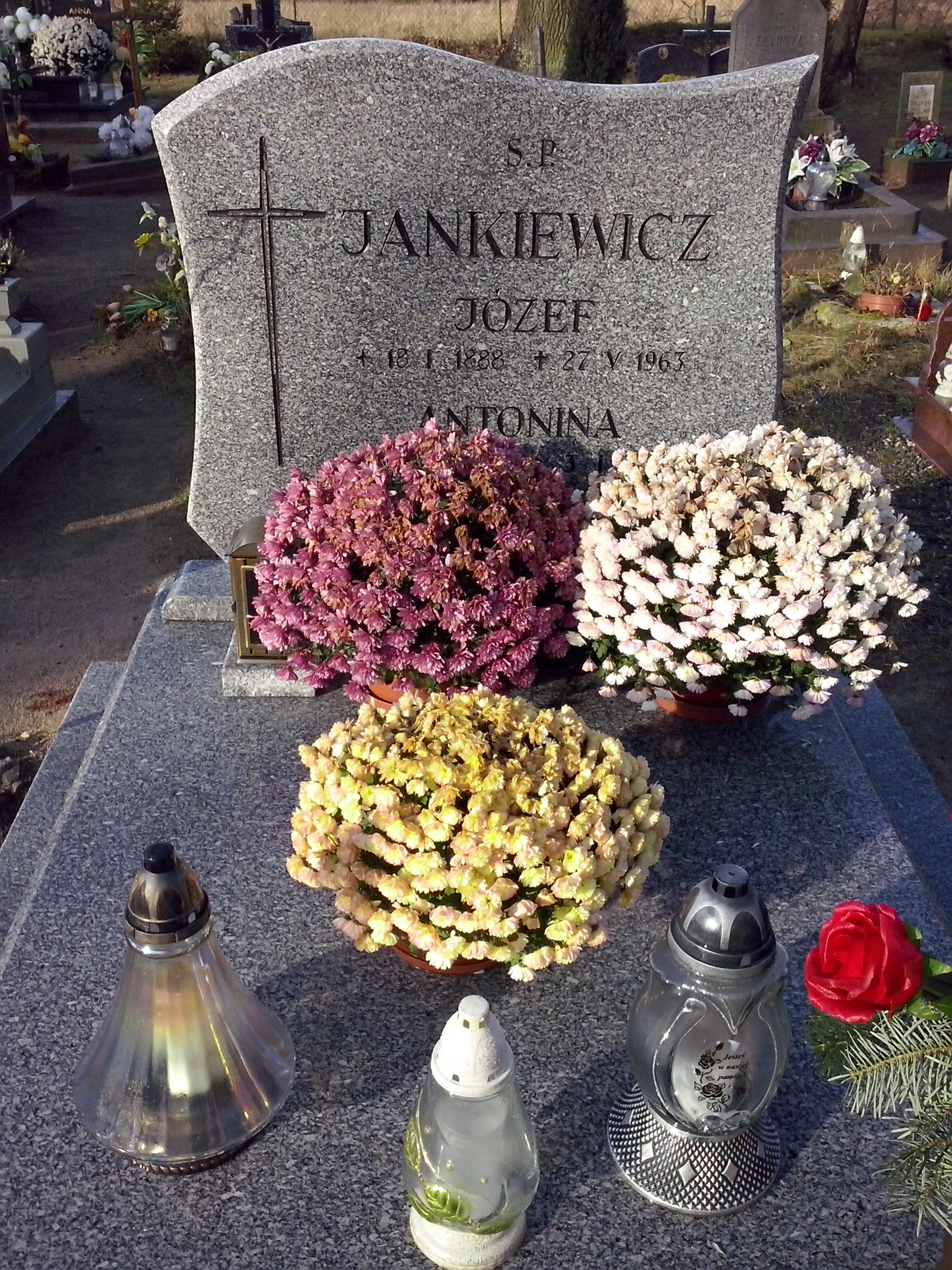 Grób: I,IV,51i52 Jankiewicz Józef ur.:1888-01-18 zm.:1963-05-27 Jankiewicz Antonina ur.:1894-05-17 zm.:1988-01-03 |