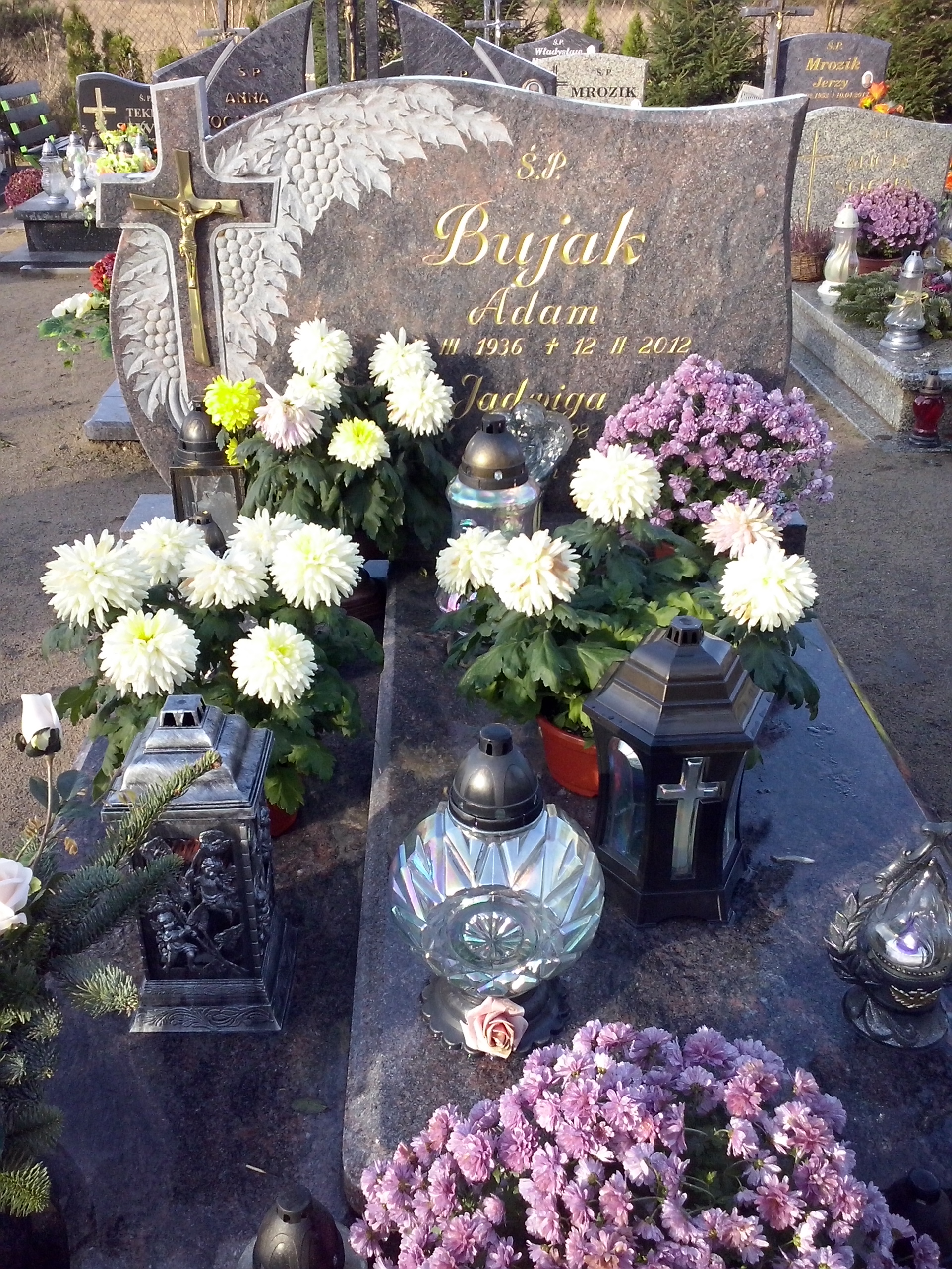 Grób: I,V,27i28 Kokorzycki Bolesław ur.:1912-09-05 zm.:1973-11-20 Kokorzycka Franciszka ur.:1911-03-18 zm.:1993-07-21 Bujak Adam ur.:1936-03-05 zm.:2012-02-12 Bujak Jadwiga ur.:1934-10-05 zm.:2014-05-28 |