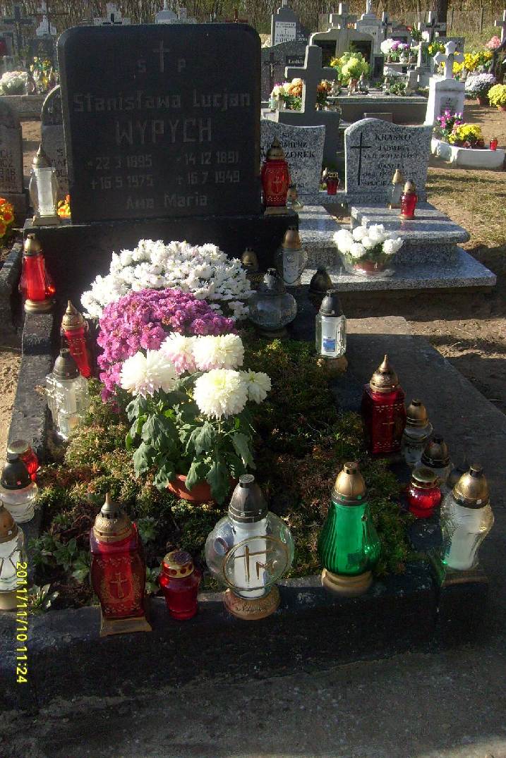 Grób: I,VIII,9i10 Wypych Lucjan ur.:1891-12-14 zm.:1949-07-16 Wypych Stanisława ur.:1895-03-22 zm.:1975-05-16 |