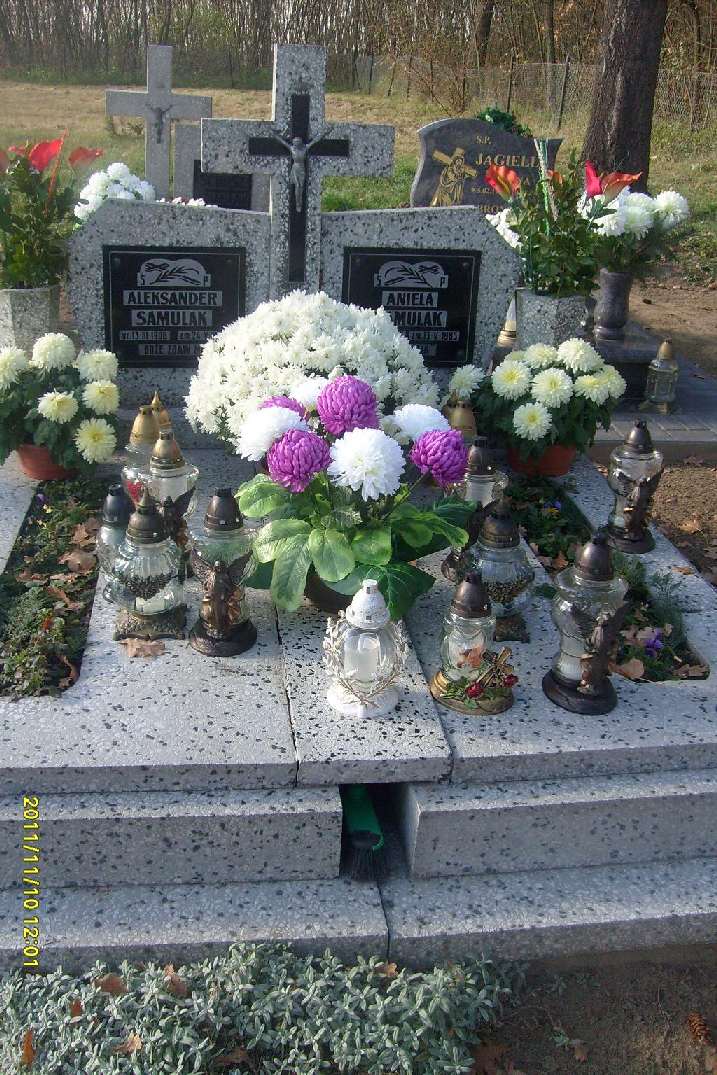 Grób: I,XIV,14i15 Samulak Aleksander ur.:1906-03-13 zm.:1958-05-24 Samulak Aniela ur.:1908-07-11 zm.:1985-05-13 |