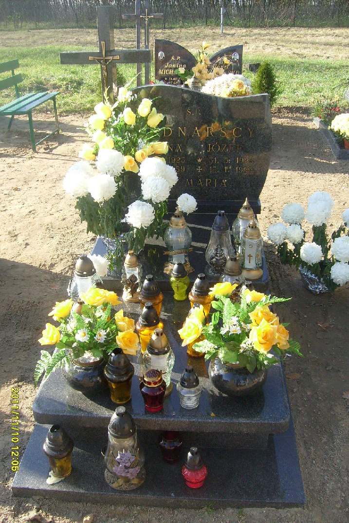 Grób: I,XV,11 Bednarska Janina ur.:1925-07-08 zm.:1959-05-04 Bednarski Józef ur.:1921-05-31 zm.:1999-01-13 |