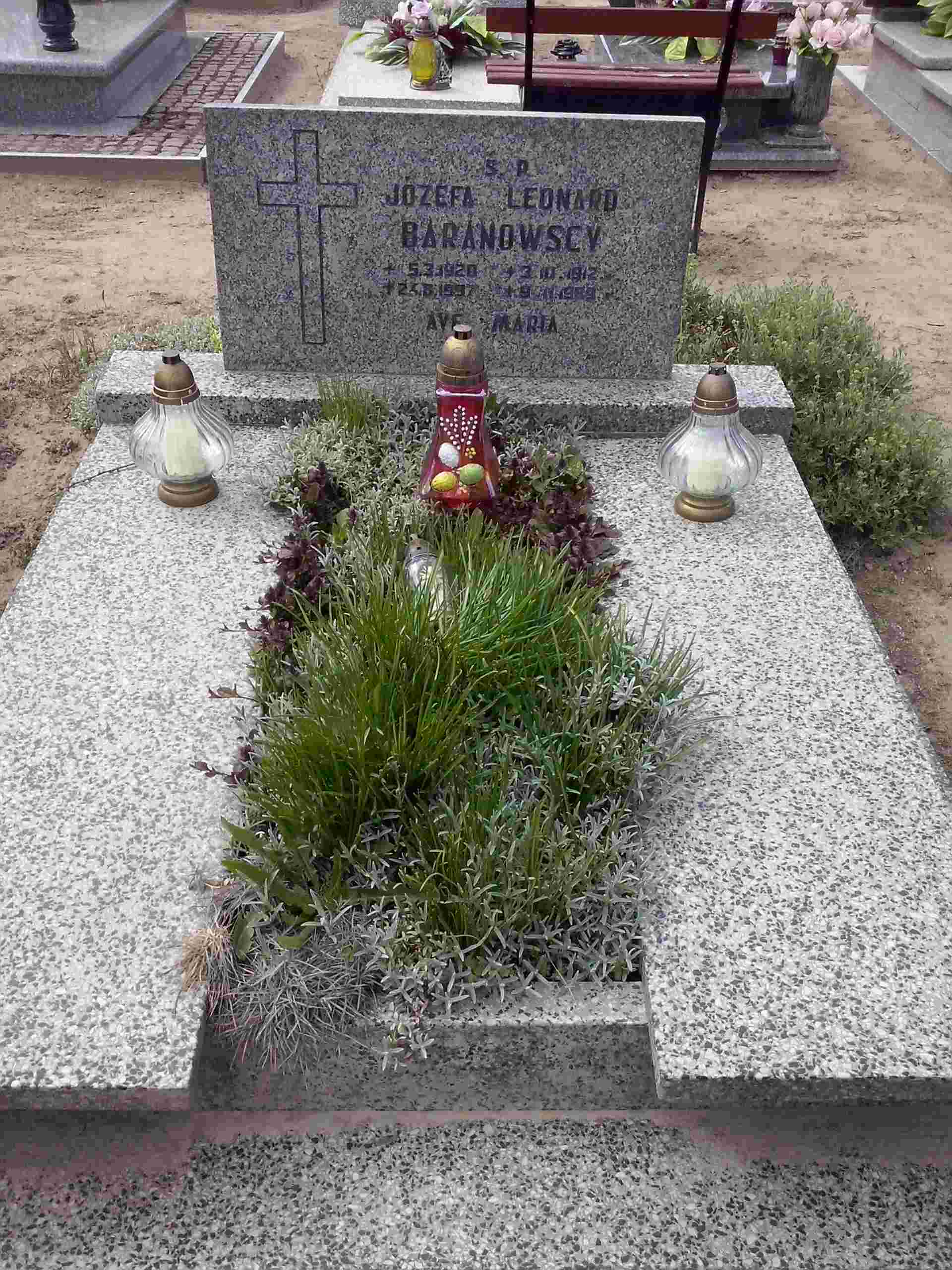 Grób: II,IV,9i10 Baranowski Leonard ur.:1912-10-03 zm.:1989-11-09 Baranowska Józefa ur.:1920-03-05 zm.:1997-08-24 |