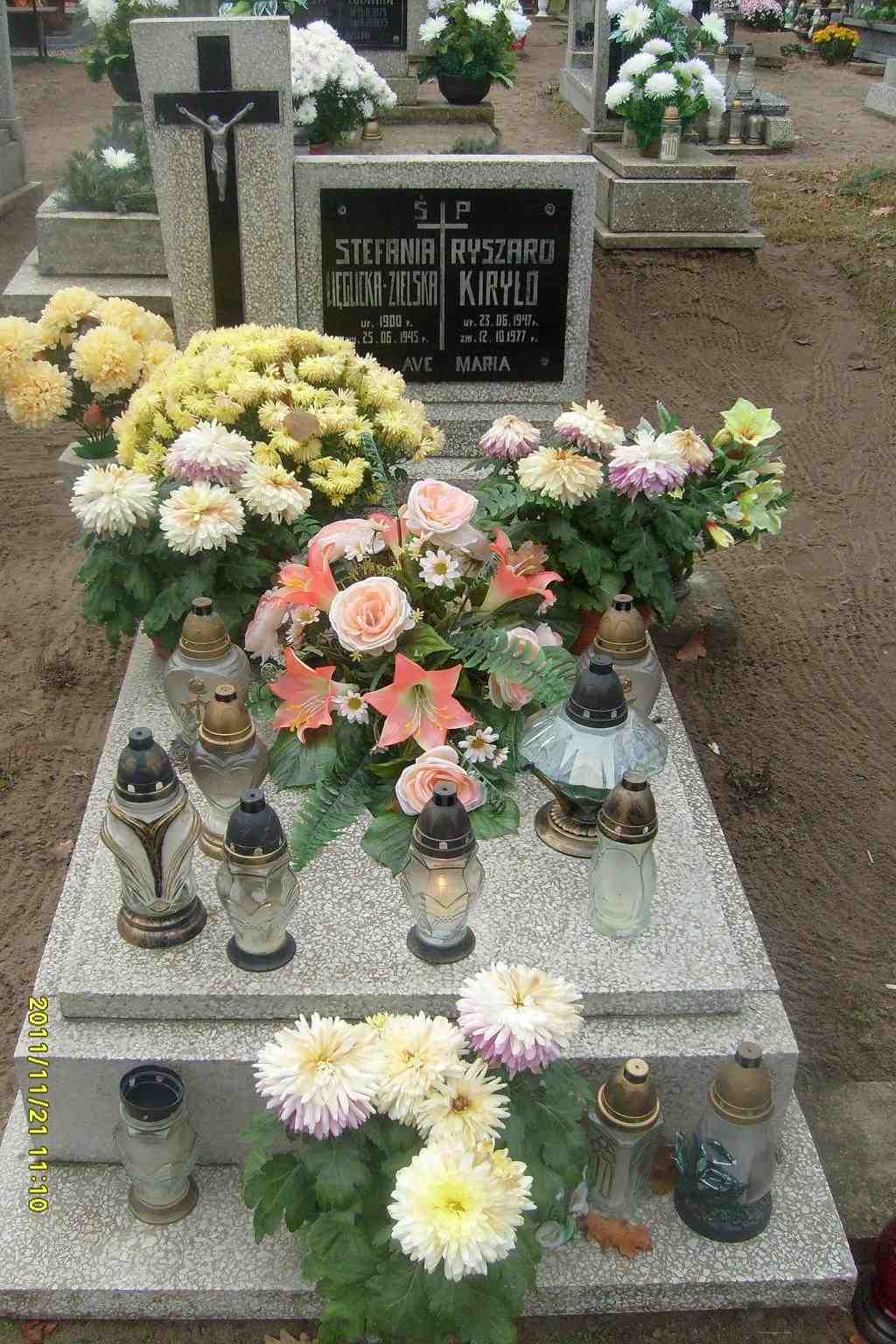 Grób: III,I,1 Węglicka- Zielska Stefania ur.:1900-01-01 zm.:1945-06-25 Kiryło Ryszard ur.:1947-06-23 zm.:1977-10-12 Jesionek Zdzisław ur.:1932-12-10 zm.:2017-11-20 |