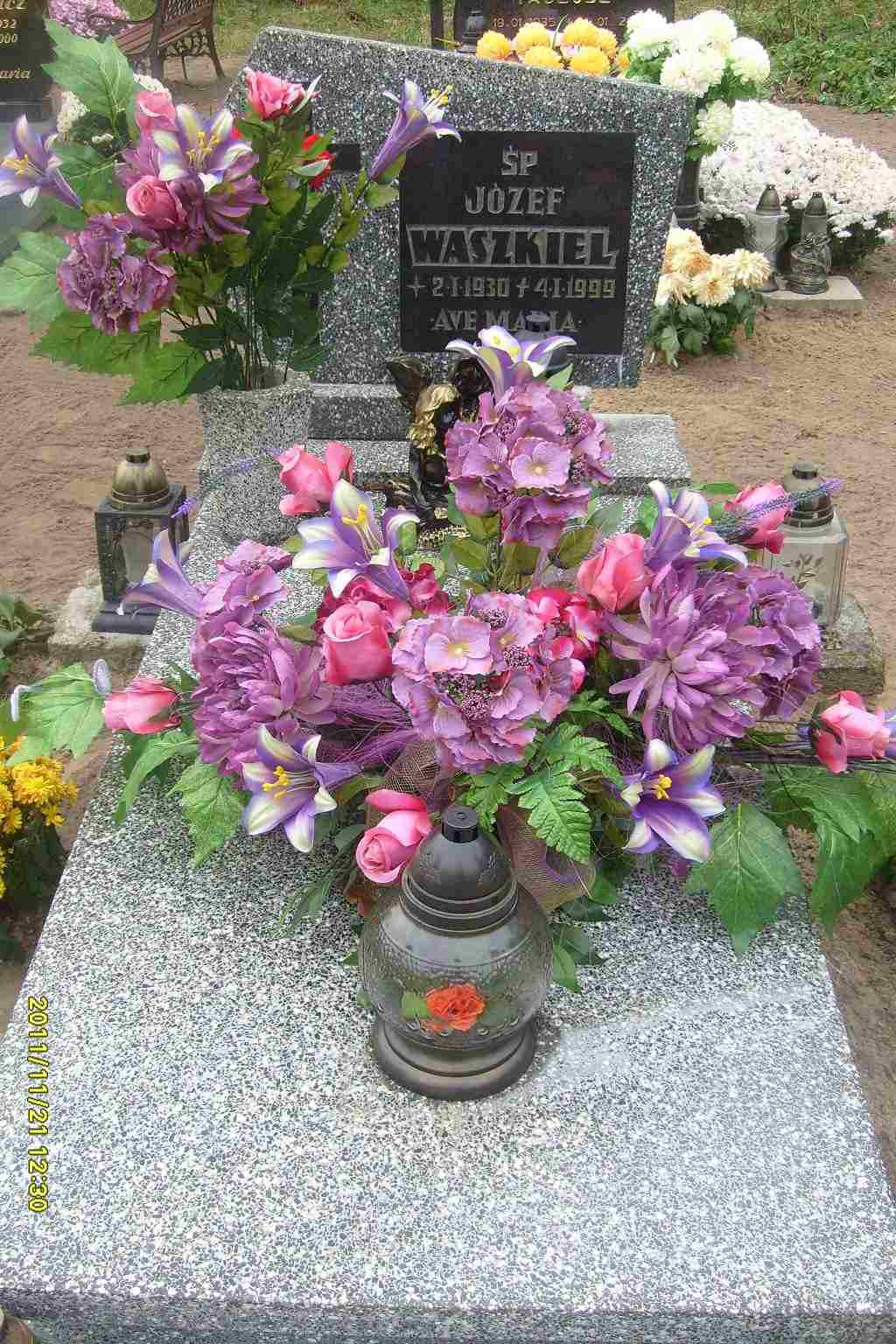 Grób: III,IV,8 Waszkiel Józef ur.:1930-01-02 zm.:1999-01-04 Waszkiel Stanisława ur.:1934-09-14 zm.:2024-10-18 |