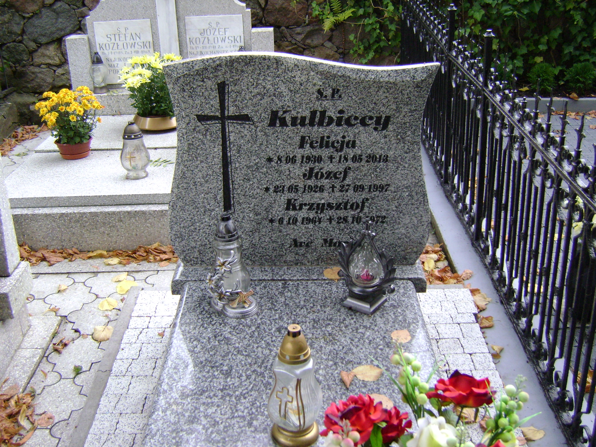 Grób: I.4.3 Kulbicki Józef ur.:23-05-1926 zm.:27-09-1997 Kulbicki Krzysztof ur.:06-10-1964 zm.:28-10-1972 Kulbicka Felicja ur.:08-06-1930 zm.:18-05-2013 |