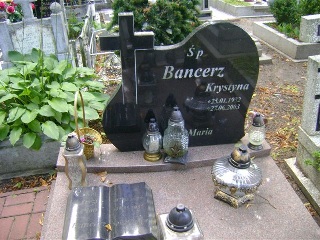 Grób: III.4.6 Bancerz Jerzy ur.:07-03-1955 zm.:18-05-1955 Bancerz Krystyna ur.:25-01-1932 zm.:27-06-2003 Bancerz Eugeniusz ur.:31-10-1930 zm.:15-02-2016 |