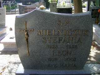 Grób: IV.6.3 Mielniczuk Stefania ur.:02-03-1928 zm.:06-06-1998 Mielniczuk Leon ur.:10-02-1928 zm.:05-09-2003 Babiracki Marian ur.:14-08-1948 zm.:01-12-2023 Babiracka Danuta ur.:02-04-1950 zm.:19-02-2022 Mielniczuk Jerzy ur.:05-07-1953 zm.:18-12-2022 |