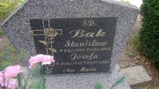 Grób: IX.3.6 Bąk Józefa ur.:16-02-1912 zm.:24-07-2003 Bąk Stanisław ur.:20-02-1909 zm.:09-01-1985 |