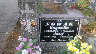 Grób: VII.2.17 Nowak Józef ur.:08-06-1926 zm.:24-06-1996 Nowak Bogumiła ur.:23-05-1926 zm.:10-11-1994 Mordel Bogdan ur.:07-12-1953 zm.:28-04-2025 |