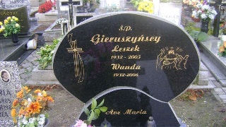 Grób: VII.8.10 Gieruszyńska Wanda ur.:23-03-1932 zm.:13-08-2006 Gieruszyński Leszek Kazimierz ur.:31-01-1932 zm.:30-10-2005 |