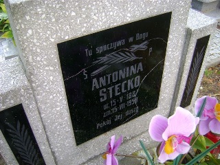 Grób: VIII.11.12 Stecko Antonina ur.:15-05-1887 zm.:15-07-1959 Stecko Michalina ur.:15-10-1925 zm.:10-09-2017 |
