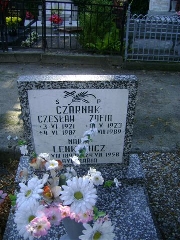 Grób: VIII.15.3 Czarnak Czesław ur.:03-04-1921 zm.:04-06-1987 Czarnak Zofia ur.:10-05-1923 zm.:14-08-1989 Lenkiewicz Maria ur.:02-08-1893 zm.:24-07-1958 |