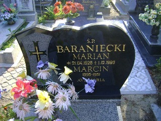 Grób: VIII.3.13 Baraniecki Marcin ur.:__-__-1896 zm.:__-__-1961 Baraniecki Marian ur.:21-04-1928 zm.:01-12-1998 Baraniecka Maria ur.:12-01-1931 zm.:01-05-2000 Baraniecka Paulina ur.:15-06-1897 zm.:23-08-1976 |