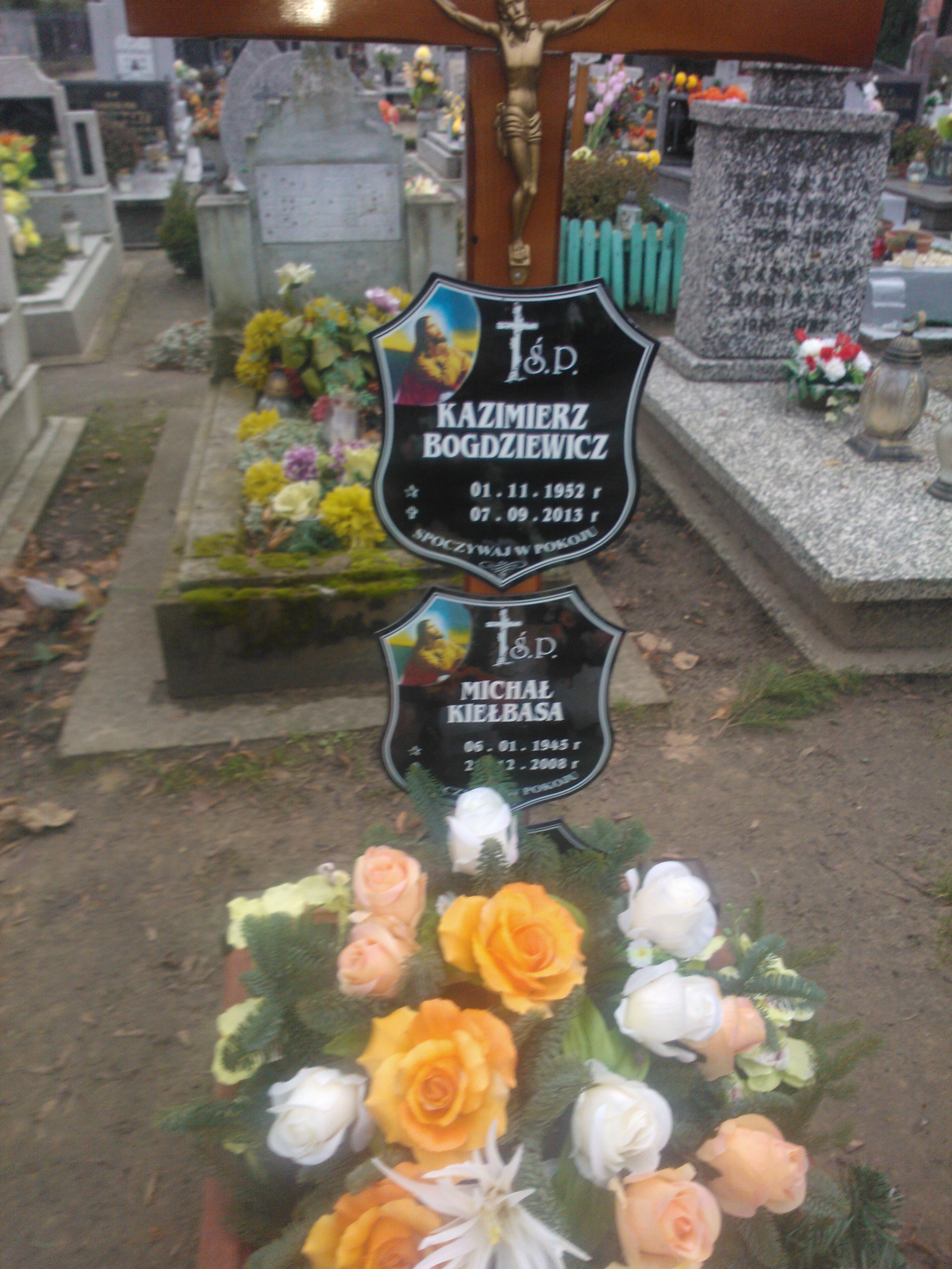 Grób: X.16.16 Kiełbasa Michał ur.:06-01-1945 zm.:28-12-2008 Kiełbasa Justyna ur.:27-12-1880 zm.:21-11-1967 Bogdziewicz Kazimierz ur.:01-11-1952 zm.:07-09-2013 |