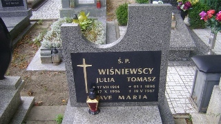 Grób: X.18.4 Wiśniewska Julia ur.:17-07-1914 zm.:17-10-1996 Wiśniewski Tomasz ur.:01-01-1896 zm.:19-05-1967 |