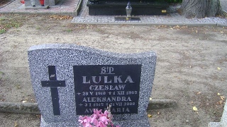 Grób: X.20.2 Lulka Czesław ur.:28-05-1910 zm.:01-12-1965 Lulka Aleksandra ur.:03-01-1915 zm.:21-07-2000 |