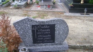 Grób: X.20.3 Całko Aniela ur.:__-__-1883 zm.:__-__-1966 Całko Urszula ur.:02-02-1915 zm.:20-04-2003 |