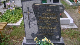 Grób: X.22.8 Buhajczuk Jan ur.:15-04-1950 zm.:02-06-1965 Buhajczuk Elżbieta ur.:24-06-1950 zm.:14-01-2007 Gawlas Jakub ur.:23-09-1993 zm.: Sypniewicz Żaneta ur.:11-10-1973 zm.:02-09-2020 |
