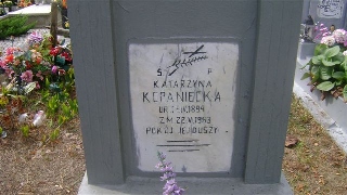 Grób: X.28.10 Kopaniecka Katarzyna ur.:17-04-1894 zm.:22-05-1963 Głuszko Stanisław ur.:24-06-1921 zm.:30-05-2004 Głuszko Michał ur.:14-06-1924 zm.:13-01-1963 Głuszko Maria ur.:23-08-1889 zm.:20-08-2014 |