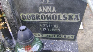 Grób: XIX.15.2 Dobrowolska Anna ur.:23-01-1913 zm.:17-11-1995 |