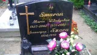 Grób: XIX.16.6 Smaroń Władysław ur.:10-10-1931 zm.:30-03-2001 Szara Seweryna ur.:__-__-1900 zm.:__-__-1950 Smaroń Maria ur.:20-02-1923 zm.:19-04-2002 |