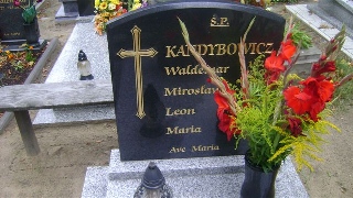 Grób: XIX.24.11 Kandybowicz Mirosława ur.:28-04-1927 zm.:14-06-2010 Kandybowicz Maria ur.:12-04-1982 zm.:15-03-1982 Kandybowicz Leon ur.:30-04-1899 zm.:15-06-1983 Kandybowicz Waldemar ur.:11-06-1928 zm.:28-01-2008 Kandybowicz Bogdan Mirosław ur.:03-11-1953 zm.:17-05-2012 |