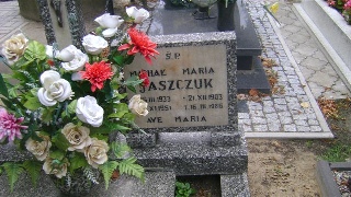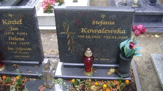 Grób: XIX.25.13 Gajewski Jan ur.:07-03-1957 zm.:07-03-1957 Kowalewska Stefania ur.:08-10-1922 zm.:25-01-2009 Kozieł Jan ur.:__-__-1878 zm.:__-__-1951 Kozieł Henryk ur.:21-06-1927 zm.:27-01-1977 |