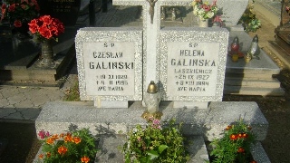 Grób: XIX.8.10 Galińska Helena ur.:25-09-1927 zm.:08-08-1994 Galiński Czesław ur.:19-11-1929 zm.:04-02-1996 Kostan Michalina ur.:__-__-1895 zm.:__-__-1948 |