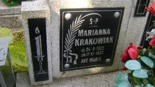 Grób: XVII.10.9 Krakowiak Tomasz ur.:29-12-1903 zm.:28-05-1989 Krakowiak Marianna ur.:24-05-1905 zm.:17-11-1982 |