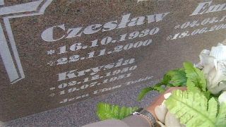 Grób: XVII.13.1 Siwek Krystyna ur.:02-12-1950 zm.:19-07-1951 Siwek Czesław ur.:16-10-1930 zm.:22-11-2000 Siwek Emilia ur.:04-04-1927 zm.:18-06-2009 Siwek Stanisław ur.:27-06-1958 zm.:08-10-2020 |
