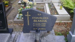 Grób: XVII.27.12 Błasiak Stanisława ur.:12-01-1908 zm.:11-11-1940 |