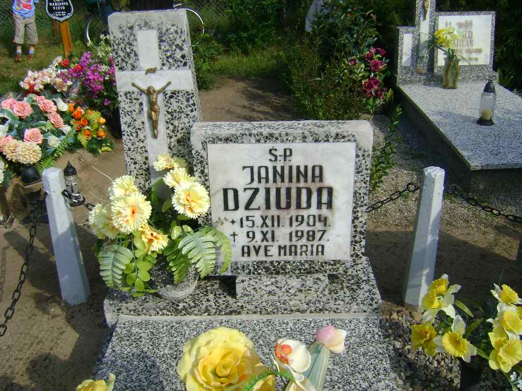 Grób: I.2.15 Dziuda Janiana ur.:15.12.1904 zm.:09.11.1987 Całkowski Antoni ur.:07-12-1953 zm.:13-08-2012 |