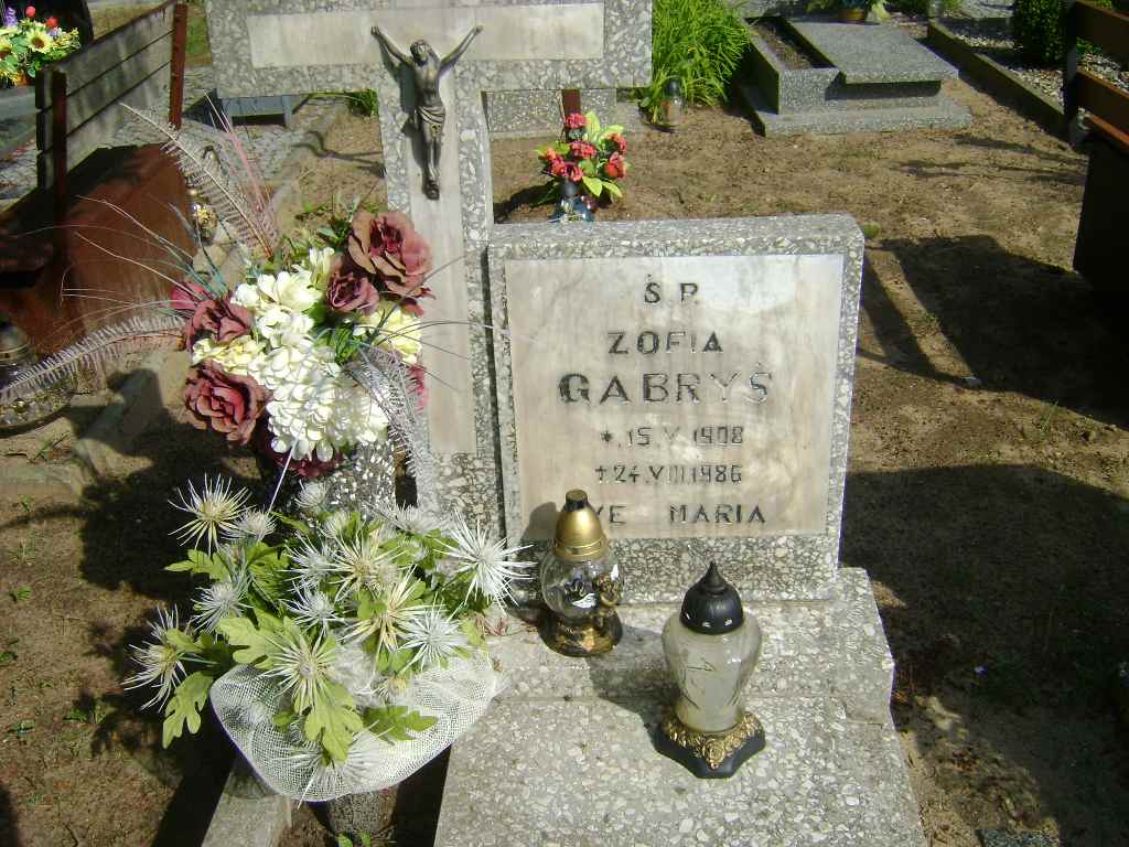 Grób: I.6.6 Gabryś Zofia ur.:15.05.1908 zm.:24.08.1986 |