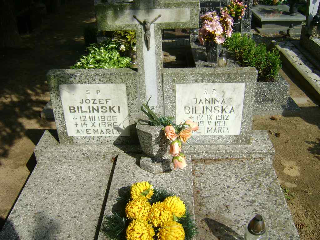 Grób: I.8.1 Bilińska Janina ur.:12.09.1912 zm.:19.05.1991 Biliński Józef ur.:12.03.1906 zm.:14.10.1986 |