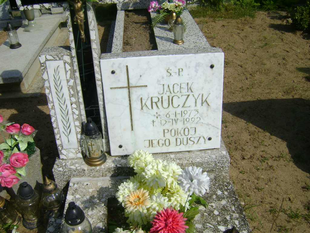 Grób: I.8.9 Kruczyk Jacek ur.:06.01.1973 zm.:13.04.1992 Gawarska Janina ur.:26-10-1949 zm.:22-10-2021 |