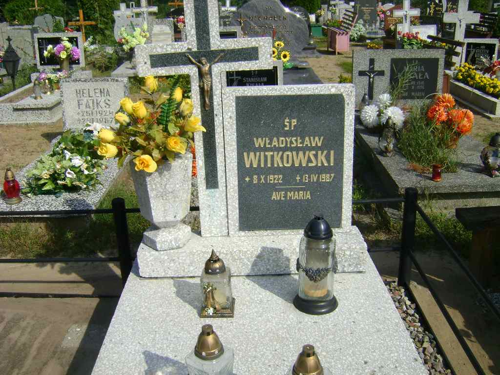 Grób: I.9.12 Witkowski Władysław ur.:08-10-1922 zm.:13-04-1987 Witkowska Anna ur.:15-07-1921 zm.:15-02-2014 |