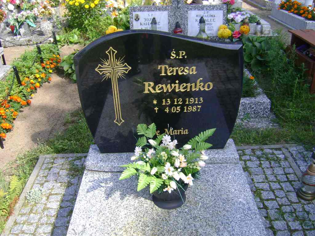 Grób: I.9.17 Rewienko Teresa ur.:13.12.1913 zm.:04.05.1987 Kula Franciszek ur.:27-07-1899 zm.:25-10-1967 Kula Antonina ur.:26-06-1898 zm.:06-05-1988 |