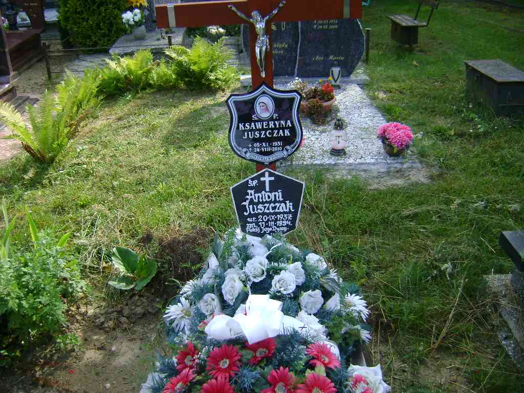 Grób: II.11.15 Juszczak Ksaweryna ur.:1931.11.05 zm.:2010.08.24 Juszczak Antoni ur.:20.09.1935 zm.:11.03.1989 |