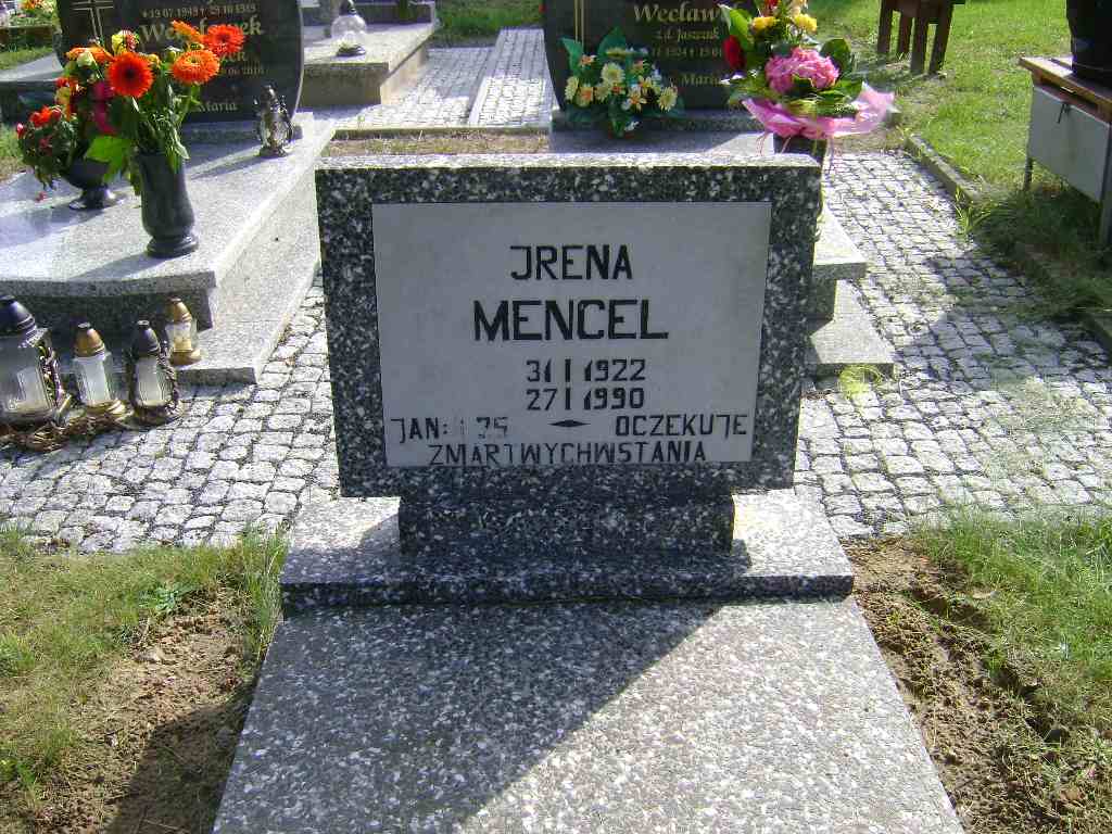 Grób: II.15.14 Mencel Irena ur.:31.01.1922 zm.:27.01.1990 Mencel Edward Stanisław ur.:20-02-1934 zm.:15-09-2015 |