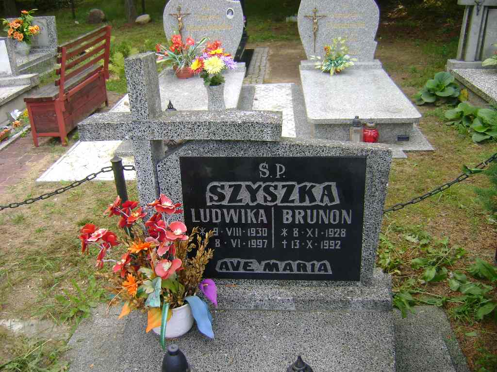 Grób: II.5.10 Szyszka Brunon ur.:08.11.1928 zm.:13.10.1992 Szyszka Ludwika ur.:9.08.1930 zm.:8.06.1997 Szyszka Jan ur.:24-11-1964 zm.:17-02-2017 |
