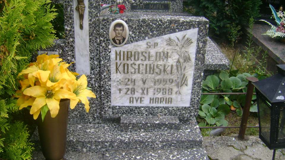 Grób: II.9.19 Kościński Mirosław ur.:24.05.1959 zm.:28.11.1988 Kościńska Anna ur.:01-10-1933 zm.:21-02-2023 |